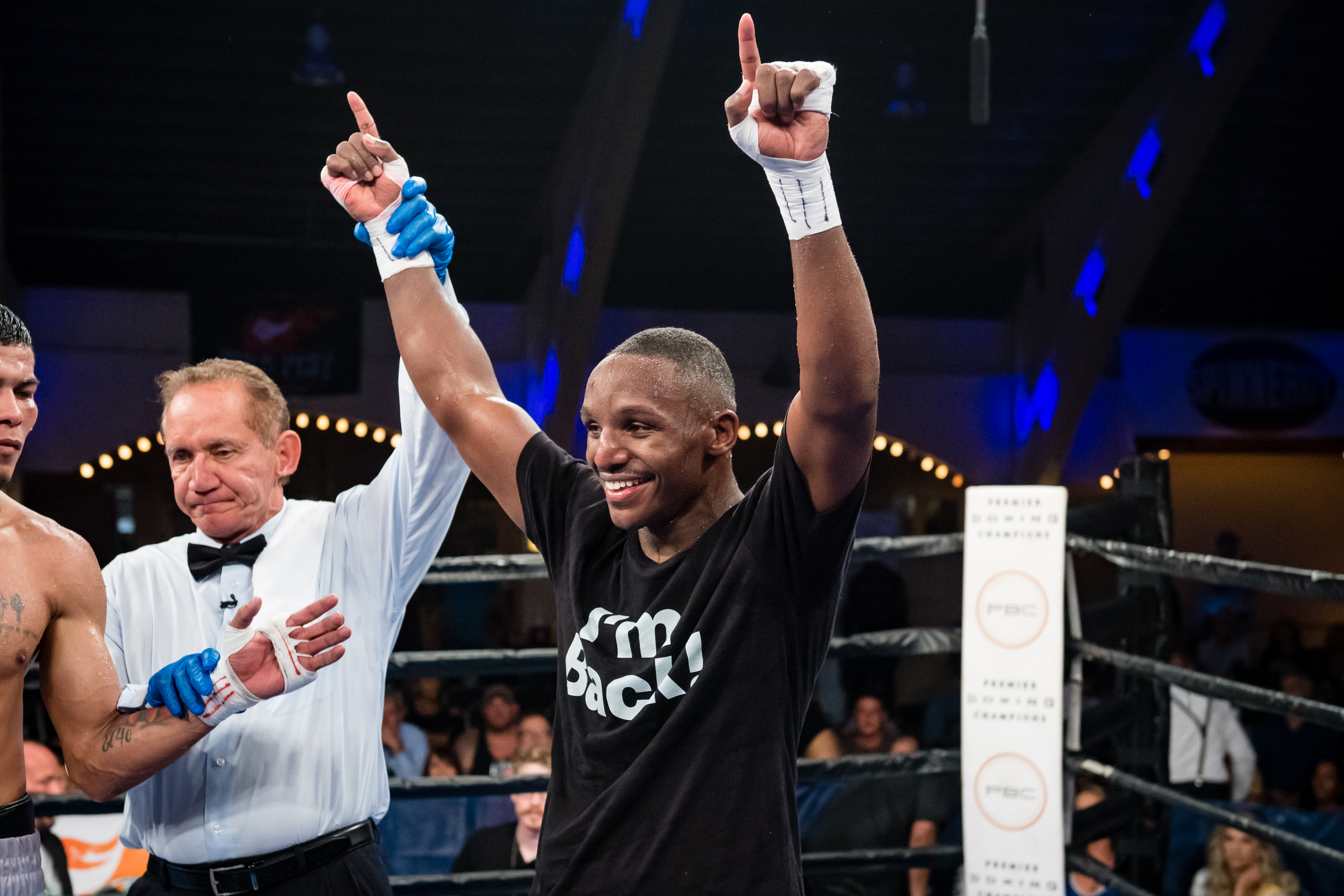 Former two-division world champion Devon Alexander scored a second-round knockdown on his way to a UD (100-89 X 2, 96-93) victory in his first fight back in more than two years.